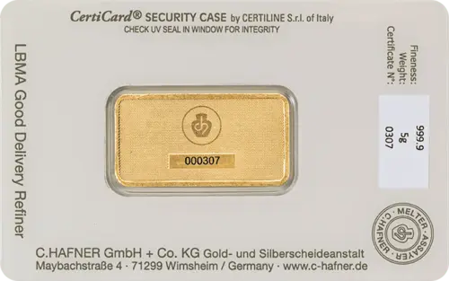 Schreibe die erste Rezension für „5 G Feingold Goldbarren C.Hafner“
